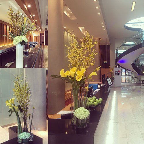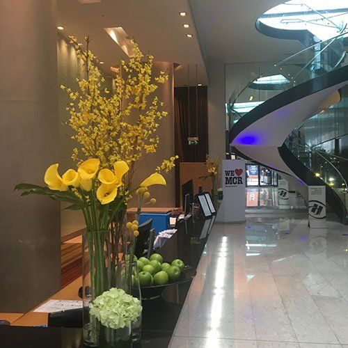 If you work in Manchester, flowers from Flowerstyle can create a welcoming environment in your business premises or offices. Whether you want to liven up your office reception or give a stylish, contemporary feel to your store, restaurant or bar, we are the florists for you. We specialise in providing corporate flowers on a weekly contract as well as displays for business functions. Get in touch with us to arrange a personal visit to your workplace.